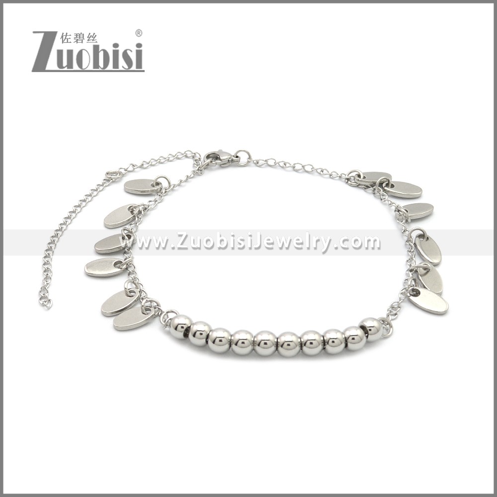Stainless Steel Anklets ac000118S, size is chain: 245*2.5*1.3mm, extended chain: 55mm, a:11*6*1.5mm