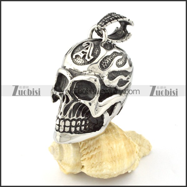 good quality 3D Solid Stainless Steel Big Skull Pendant for Motorcycle Bikers - p000586