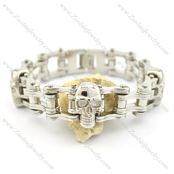 22.5cm long 3 skull heads motorcycle bike chain bracelet b002432