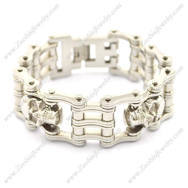 Biker Jewelry Silver Tone with Skulls Bike Chain Bracelet b002832