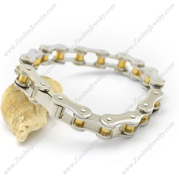 Gold and Steel Tone Bike Chain Bracelet with Melon Seed Buckle b003484