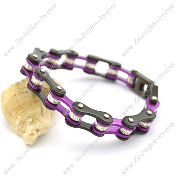 Matte Black Outside and Purple Inside Stainless Steel Bike Chain Bracelet b003490