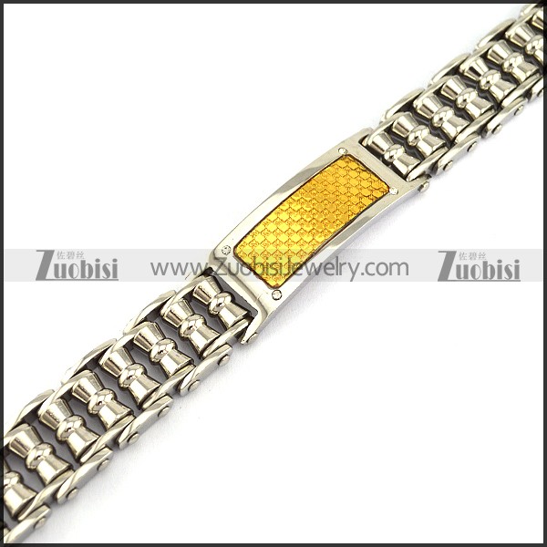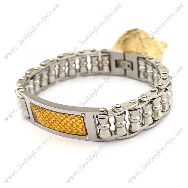 Silver Stainless Steel Bike Chain Bracelet with GP ID Plate b003991