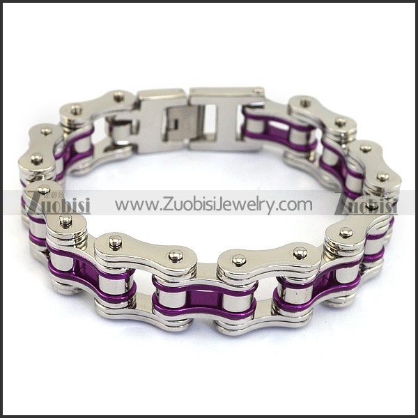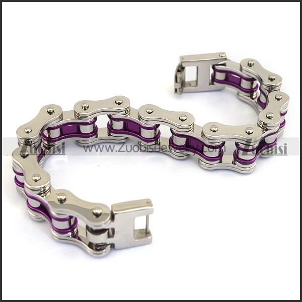 Silver Stainless Steel Bicycle Chain Bracelet with Purple Piece b004131