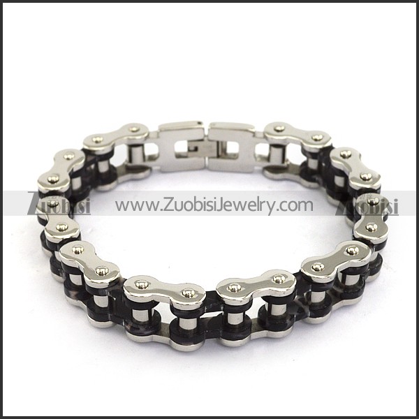 15mm Black and Silver Bicycle Chain Bracelet b004825
