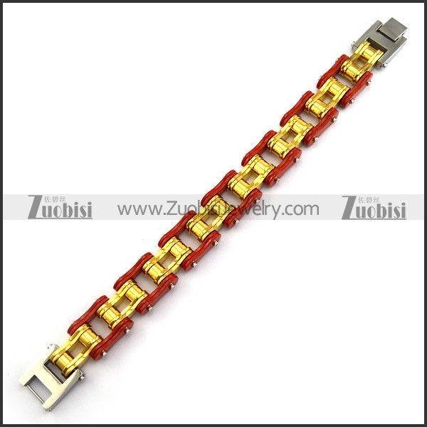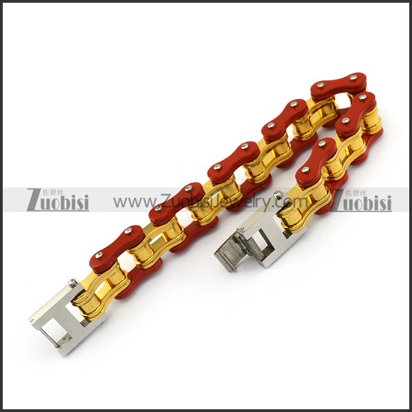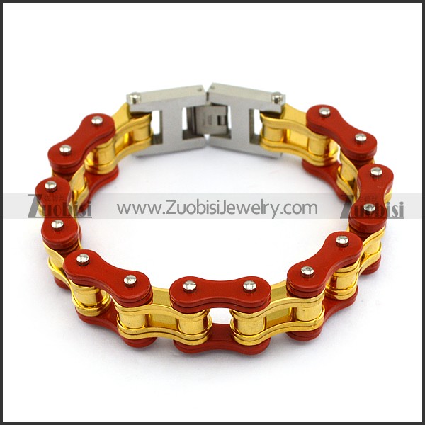 19mm Wide Red Outer and Gold Inner Link Bike Bracelet b005115