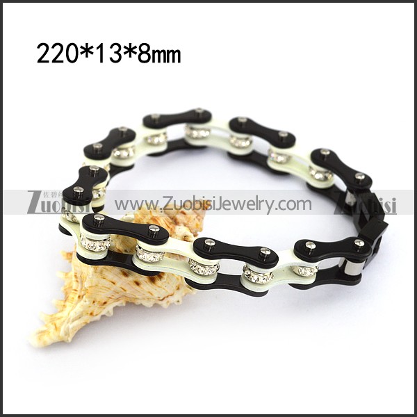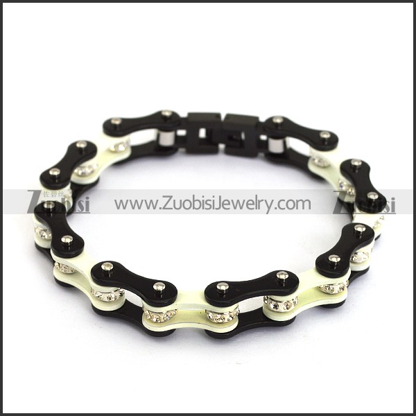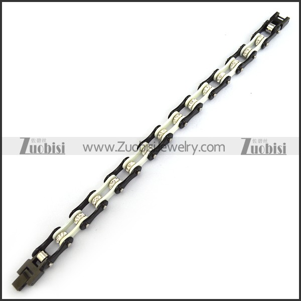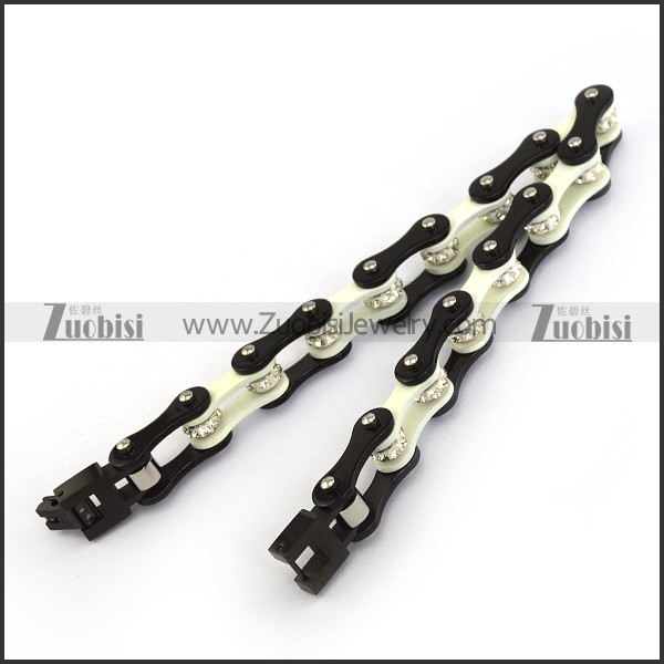 Dark Black and White Link Bracelet with Clear Crystals b005132