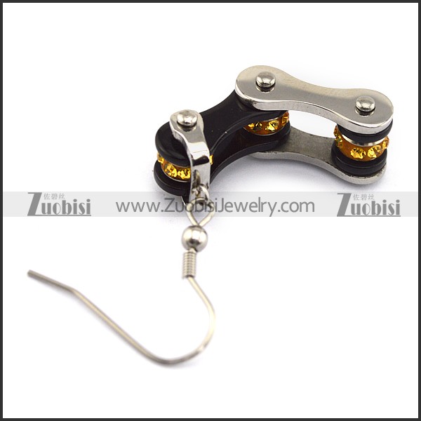 Silver Outside and Black Inside Bike Chain Earring Hook with Yellow Rhinestones e001132