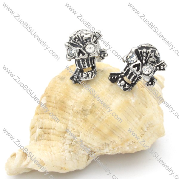 Stainless Steel Clear Zircon Skull Earrings -e000103