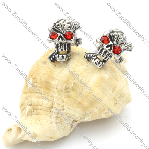 Stainless Steel Red Zircon Skull Earrings -e000104