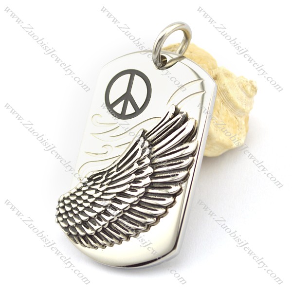 wing tag pendant with peace sign logo p001770