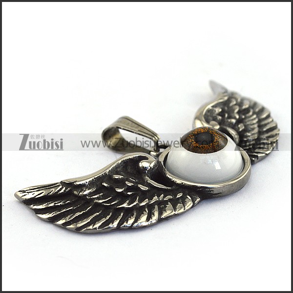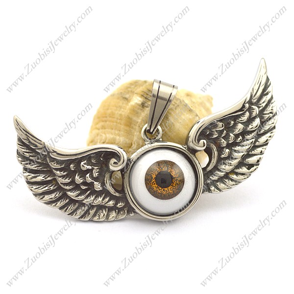 big brown angel eye pendant with 2 wings p002086