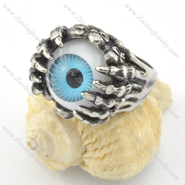 unique ghost claw ring with blue evil eye stone r001197