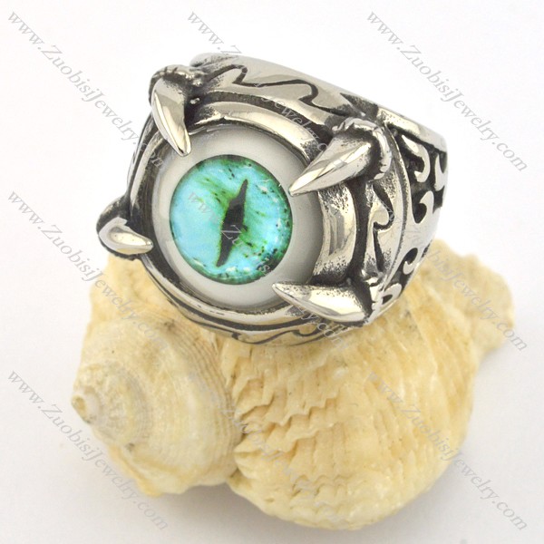 light green evil eye ring with 4 claws in stainless steel r001428