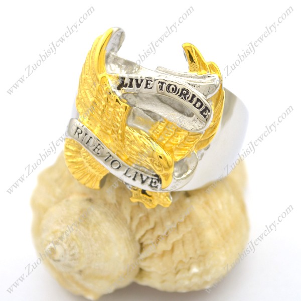 Silver and Gold Plating Steel RIDE TO LIVE Eagle Ring r002762