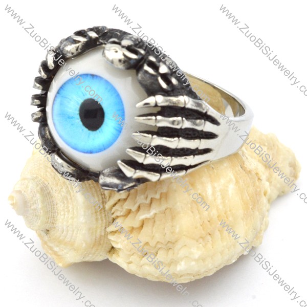blue eye skull ring in stainless steel for men - r000321