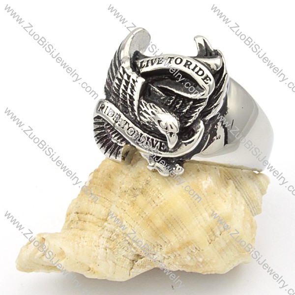 Stainless Steel Eagle Rings with slogan of LIVE TO RIDE -r000373