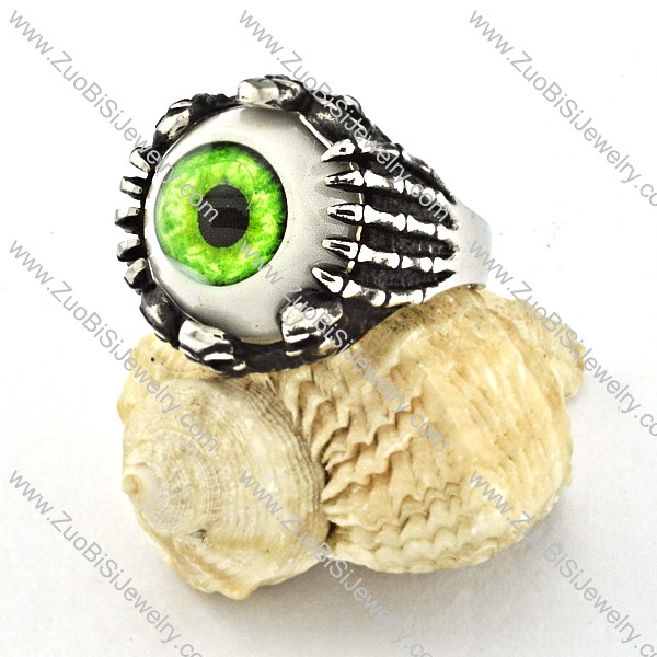 remarkable 316L Steel Evil Green Eyeball Ring with punk style for Motorcycle bikers - r000532