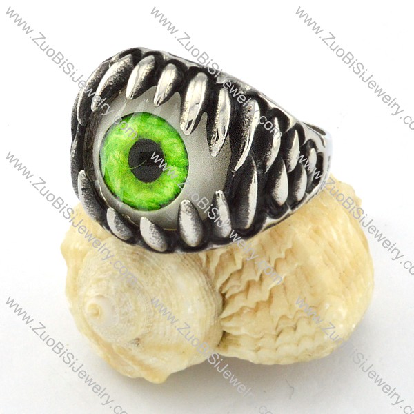 pretty Steel Green Eye Biker Ring with punk style for Motorcycle bikers - r000536