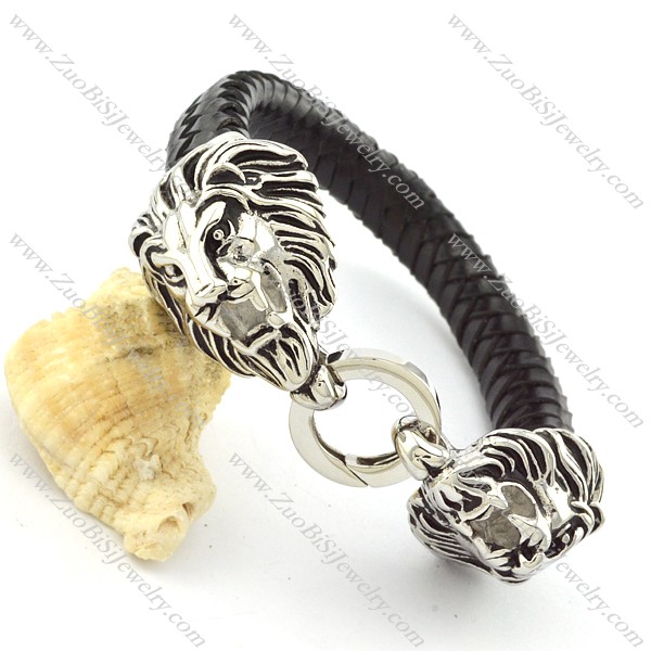 Two Lion Heads Bracelet with Leather Cord -b001327