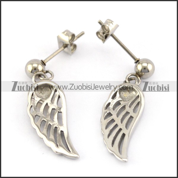 Hollow Casting Wing Earring with a Golden Heart e001360