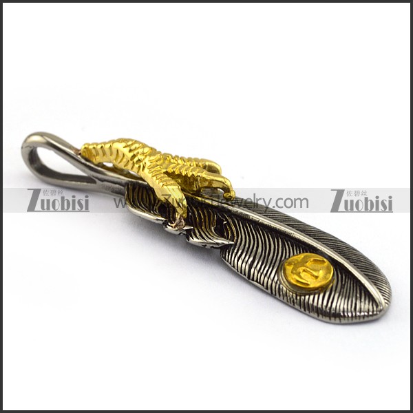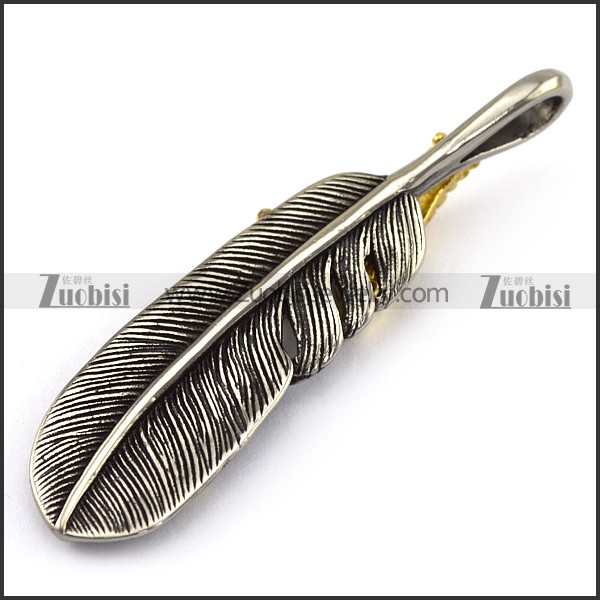 Retro Gold and Silver Steel Feather Pendant p002883