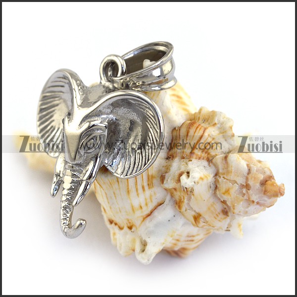 Silver Stainless Steel Elephant Head Pendant p003386