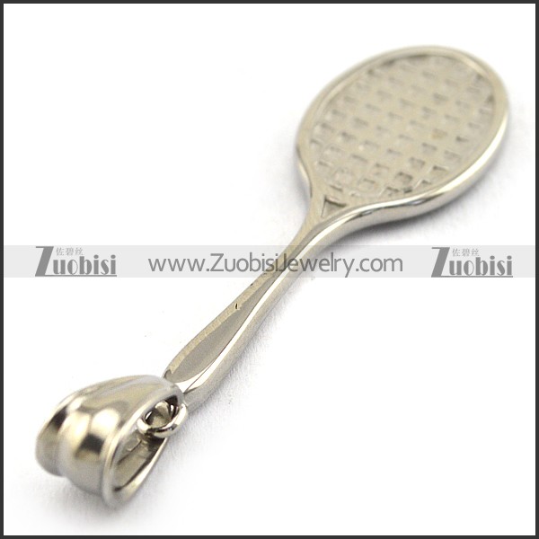 Silver Stainless Steel Badminton Racket Pendant p003390