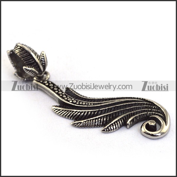 Elegant Stainless Steel Feather Pendant p003429