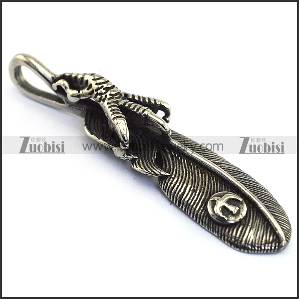 Large Mens Stainless Steel Claw Feather Pendant p003492