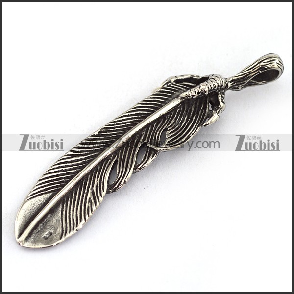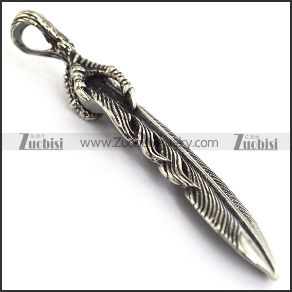 Stainless Steel Feather Pendant with Claw p003689