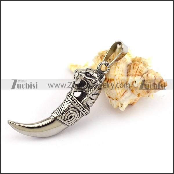 316L Stainless Steel Tiger Head Tooth Pendant p003771