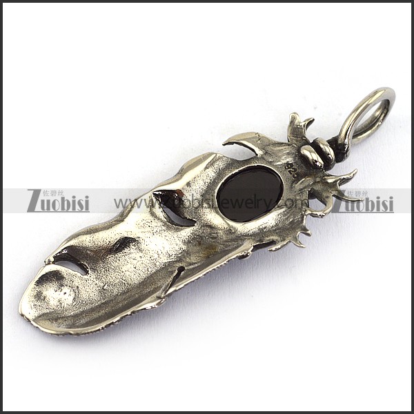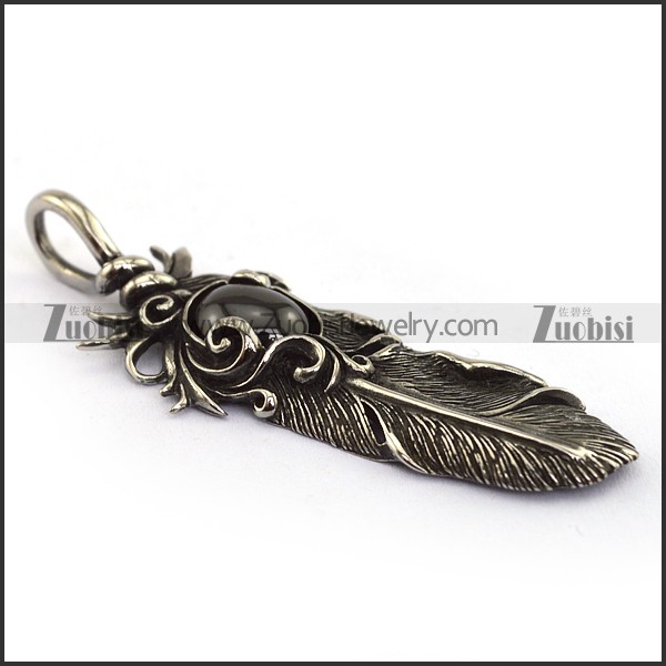 Vintage Feather Pendant with big Black Stone p003868