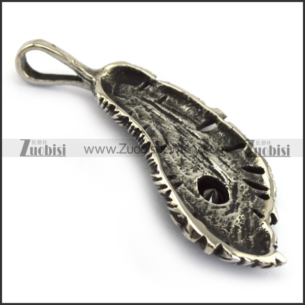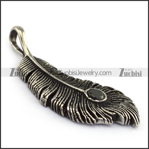 Carbon Black Rhinestone Feather Pendant in Stainless Steel p004215