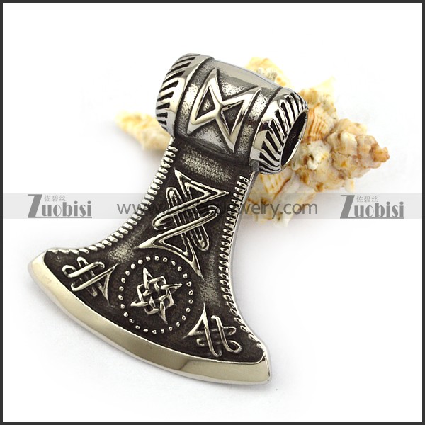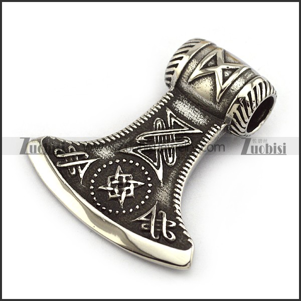 Big Vintage Viking Stainless Steel AX Pendant p004271