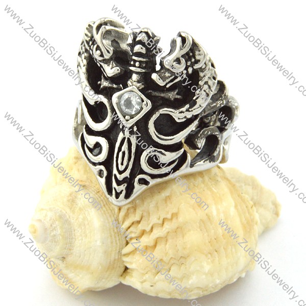 Casting Sword Ring with Clear Rhinestone in Stainless Steel -r000730
