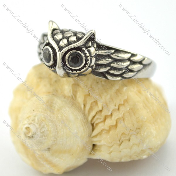 owl ring with 2 black stone eyes r001564
