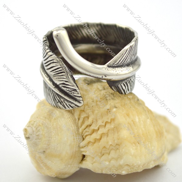 vintage leaf ring in stainless steel r001699