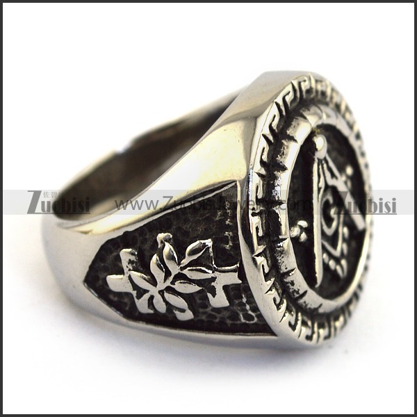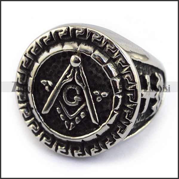 Round Silver Masonic Ring r003612