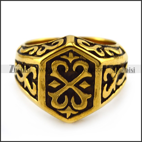 Thor Hammer Ring in Gold Plating Stainless Steel r004384