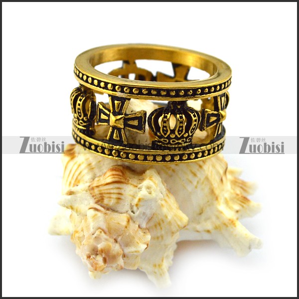 Cross and Crown Hollow Ring in Vintage Gold Plating r004518