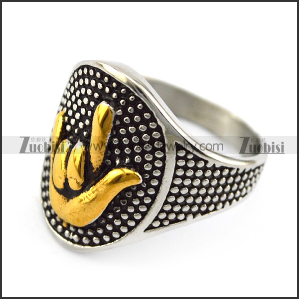 Golen Finger Sign of I LOVE YOU Ring r004964