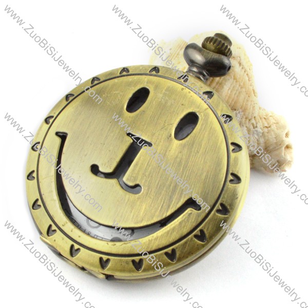 Big Vintage Bronze Smile Quartz Pocket Watch with Chain for Unisex -pw000346