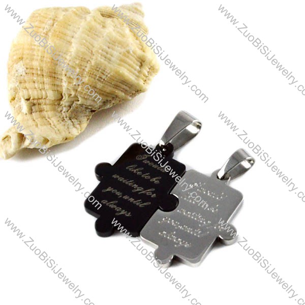 Black and Silver Picture Puzzle Stainless Steel Couple Pendants - p000046