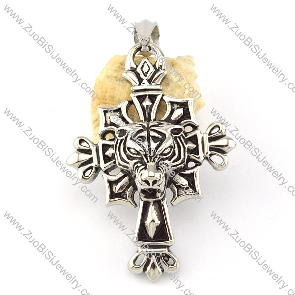 Stainless Steel Tiger Cross Pendant -p000625