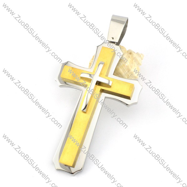 Gold Big Stainless Steel Cross Pendant -p000898