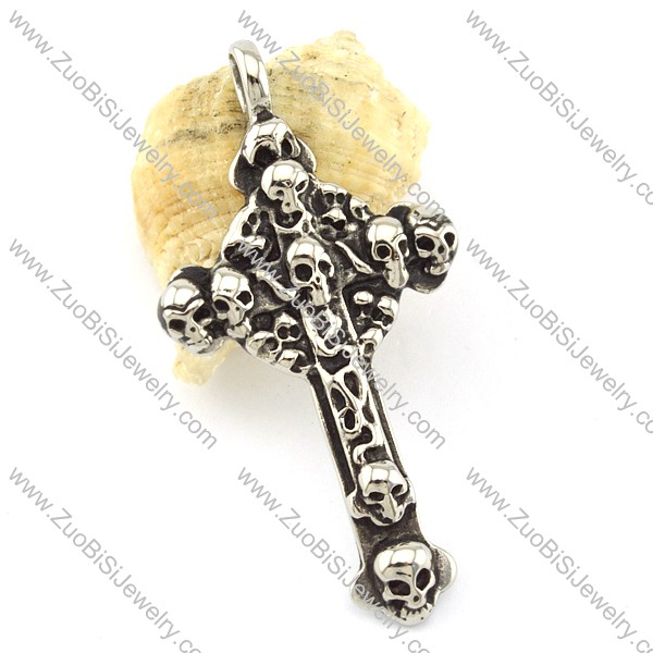 Stainless Steel Multi Skulls Cross Pendant -p001100