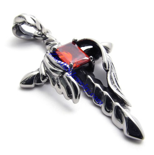 Casting Cross Pendant with Clear Red Square Stone -JP450011
