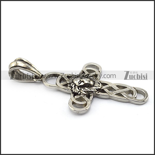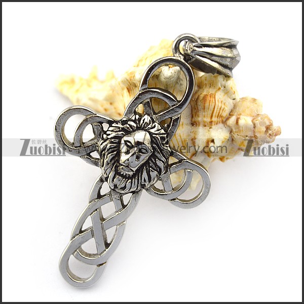 Stainless Steel Cross Pendant with Leo Head p004921