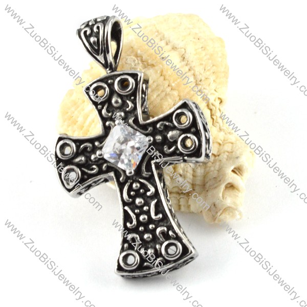 Crystal Zircon Cross Pendant in Stainless Steel - p000147